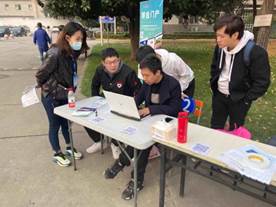为保证本次活动能尽可能全面的服务到全校每一位师生,网络管理中心按照主要面向对象的不同将活动分为上、下午两场进行,地点分别定于诸侯快讯食堂南门对面(主要面向学生用户)和1号行政楼外(主要面向教工用户)。首先,工作人员以展板、海报等形式对业务系统功能进行简单介绍;接下来,为用户分发了三个业务系统的使用手册;最后,针对感兴趣的用户提出的问题,工程师们使用笔记本电脑详细为其解答,并邀请用户直接参与体验系统功能。