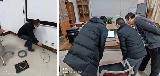 就在这样众志成城的氛围里,网络管理中心又迎来的新的任务。我们接到通知,运动训练学院综合楼六层创新创业办公室要举行教师视频会议,教学保障重中之重,网络支持责无旁贷,小编又和同事一起赶赴现场测试无线网运行状态并调试设备,让老师们开了一个安心会。