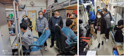 走访区域覆盖了含光校区的各个学生公寓,宿舍里上网的热闹场景和楼外的肃杀形成了鲜明的对比。领导们倾听了封闭期间同学们通过网络学习、生活的切身感受,认真记录了集中反映的问题,并让工作人员现场从学习、娱乐、通讯等多个角度做了针对性的测试和调整。