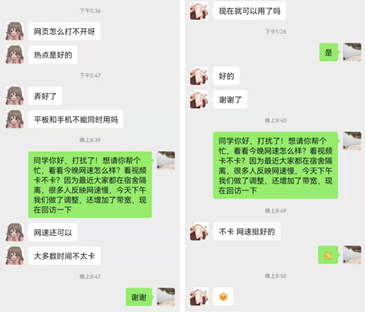 调整后,学校教育网出口临时扩容到了1G,保障教育类资源访问的同时将师生使用频度较高的应用调整到联通出口的资源池中,通过微信、电话等方式回访了解到,此前含光校区师生反映的网络卡顿、应用掉线等问题得到了有效缓解。