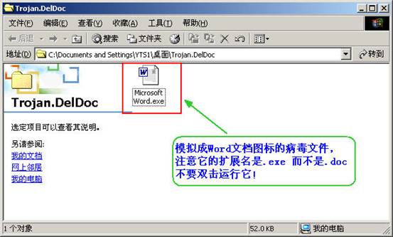 接到用户的报告后,江民反病毒专家第一时间提取了可疑文件样本并进行了特征分析,专家分析后确认,用户受害的原因系感染了一名为“WORD文档杀手”(Trojan/DelDoc)新病毒,该病毒一旦发作,可以将office用户的WORD文档逐个删除,所有windows版本用户无一幸免。