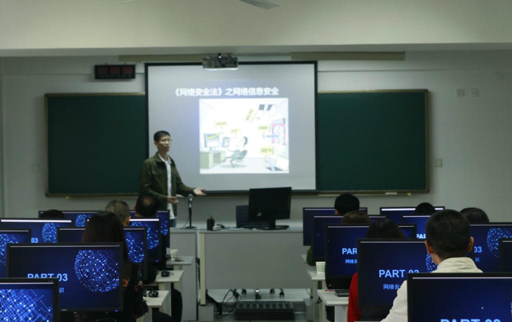 网络管理中心网络应用科科长吴昊担任主讲人,全校各二级单位网络安全联络员及教师代表约60余人到场聆听了讲座。吴昊首先对《网络安全法》的规定进行了普及和解读。随后,他介绍了“钓鱼网站”“电子邮件”“付款过程”等生活中常见的网络中毒方式,深入浅出地普及了“僵尸”“木马”“蠕虫”等主要网络传播病毒的特点和传播机制,并提出了预防措施,提醒大家文明用网、安全用网。讲座过程中,各位老师认真听讲,纷纷表示学习到了不少有用的网络安全知识,现场学习氛围浓厚,讲座效果良好。