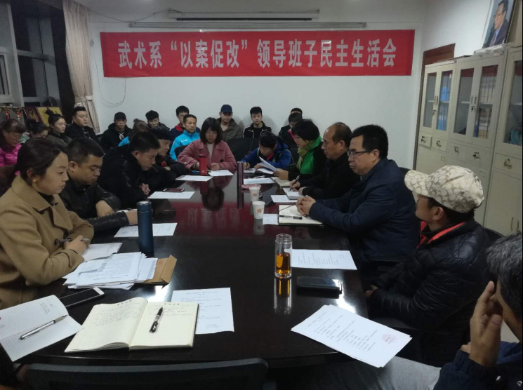 为全面贯彻落实从严治党,扎实推进“以案促改”工作,武术系党总支于11月8日晚在系会议室举行了领导班子“以案促改”专题民主生活会。副院长李富生、纪委副书记缑荣涛同志应邀出席,武术系全体党员、干部参加了会议。