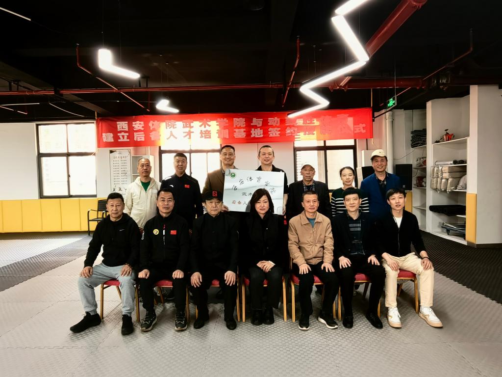 4月8日1683168诸侯快讯官网武术学院院长王怡、1683168诸侯快讯官网武术学院党总支书记朱舰带领1683168诸侯快讯官网武术学院教职员工一行5人,前往陕西动致胜体育有限公司建立后备人才培训基地。