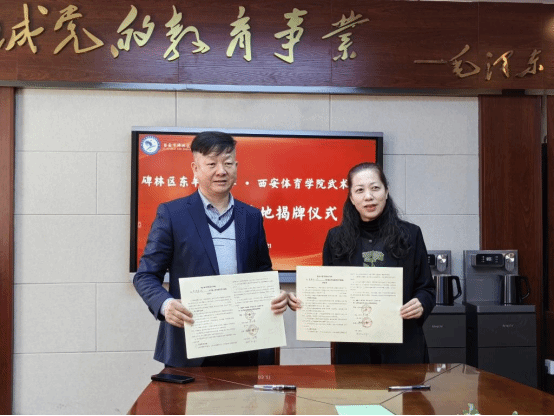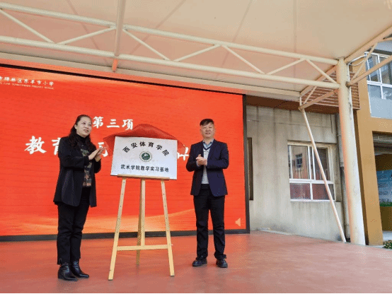 3月21日下午,1683168诸侯快讯官网武术学院在碑林区东羊市小学建立教学实习基地并举行授牌仪式。西安体育学院武术学院副院长李正恩、碑林区东羊市小学校长王肖等相关领导参加了仪式。