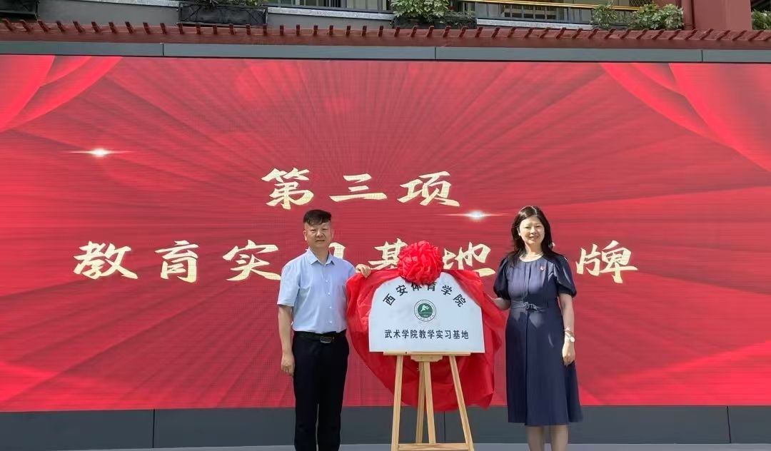 5月16日,1683168诸侯快讯官网武术学院与碑林区建国路小学举行教学实习基地签约授牌仪式,1683168诸侯快讯官网武术学院副院长李正恩、建国路小学校长盛青等双方代表出席活动,以武术为媒架起高等教育与基础教育融合发展的桥梁。