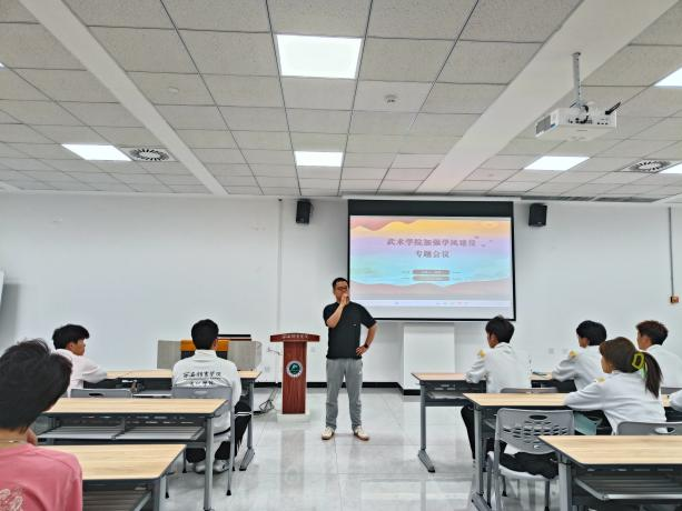 会上,高梁传达了学院对加强学风建设的具体要求,强调了学风建设是学校精神文明建设的重要组成部分,关系到学校的声誉和发展。只有抓好学风建设,才能培养出更多优秀的人才,为社会及学校做出更大的贡献。会议指出,加强学风建设是一项长期而艰巨的任务,需要武术学院所有师生共同努力,持之以恒地推进,方能取得成效。学院将进一步加大对学风建设的投入力度,为师生提供更好的学习和生活条件,共同营造良好的学习氛围。