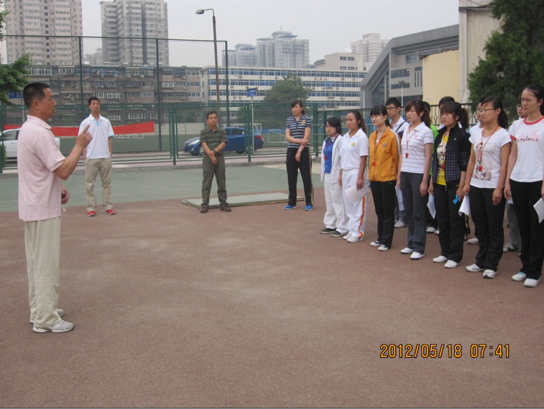 2012年5月18日上午,我系2012届40多名毕业生在第二田径场参加了教师资格证模拟考试。武术系主任马文国、党总支书记李美霞、办公室主任牛兆林、教学秘书邓春艳以及年级主任王华、纪伟和08级辅导员老师滑勇在考试现场进行巡视和协调指挥。