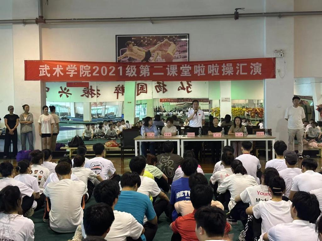 为了全面落实学校“十大改革工程”及学风建设,丰富学生课余生活,营造浓厚的校园文化氛围,发展学生兴趣特长,体现诸侯快讯的育人特色,培养学生的审美情趣。2024年6月20日下午5时,武术学院在套路馆召开了“武术学院2021级第二课堂啦啦操汇报表演”。参加活动的有武术学院院务会成员、指导教师许波、俞丹以及2021级全体学生。