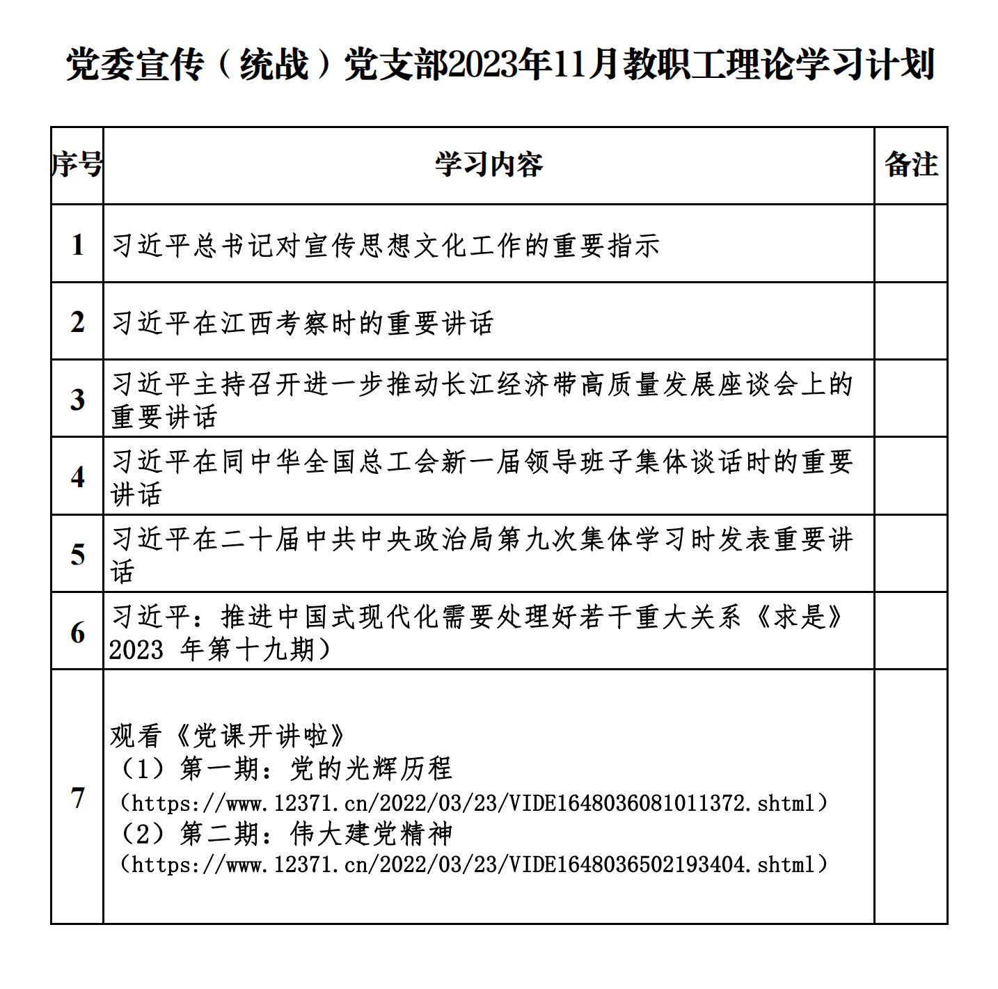 党委宣传(统战)党支部2023年11月教职工理论学习计划