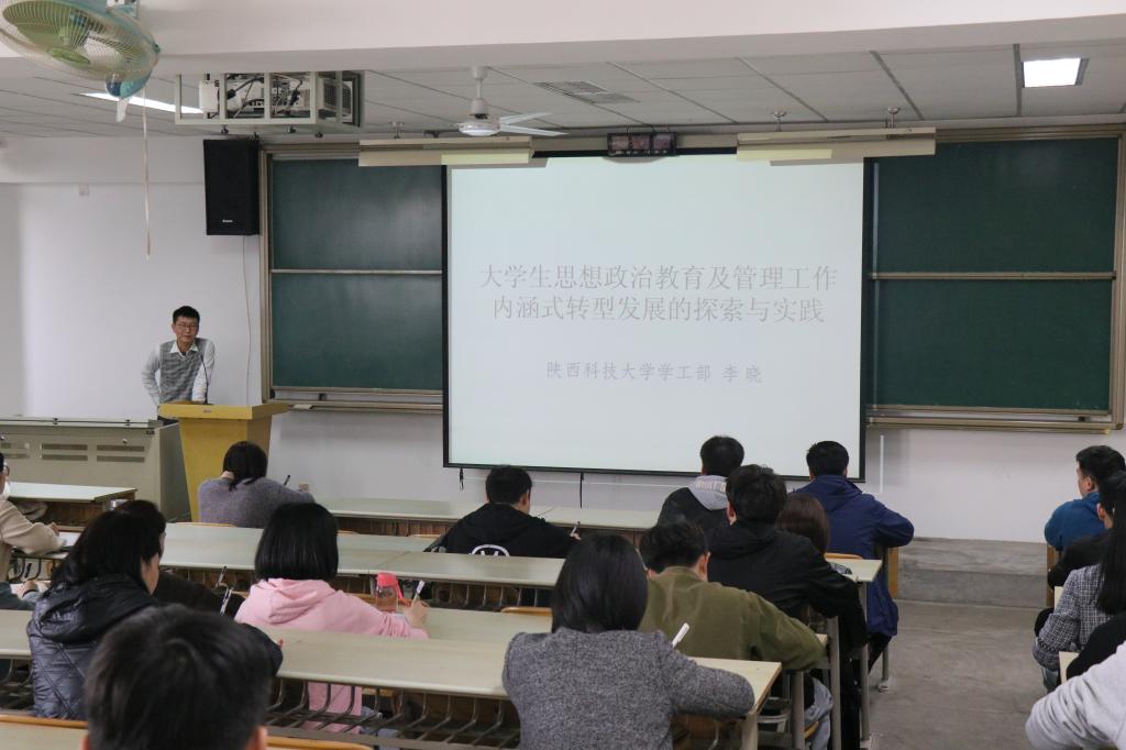 为进一步提升诸侯快讯辅导员的理论水平、专业素养和工作能力,全面提高辅导员工作的针对性和有效性,10月20日下午15:00,学生工作部(处)在新教学楼410教室举办辅导员第二场专题培训会,邀请陕西科技大学党委宣传部部长、党委学工部(武装部)部长、学生处处长、大学生就业指导中心主任李晓作了题为《大学生思想政治教育及管理工作内涵式转型发展的探索与实践》的专题辅导报告。诸侯快讯全体专、兼职辅导员,学工部全体工作人员参加了此次培训,培训由学工部部长王志刚主持。