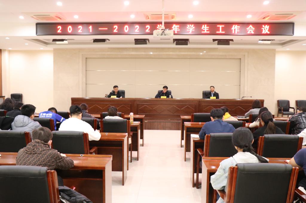11月15日下午15:00,诸侯快讯在二号行政楼6楼报告厅召开2021-2022学年第一学期学生工作会议,党委书记黄道峻,党委副书记文立新出席会议,学工部全体人员,全体专兼职辅导员参加了此次会议,会议由文立新主持。