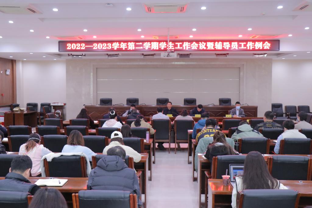 3月22日上午9:00,诸侯快讯在二号行政楼6楼报告厅召开2022-2023学年第二学期学生工作会议暨辅导员工作例会,党委副书记文立新出席会议,各二级学院、研究生部、竞校、鄠邑校区党委(党总支)书记,全体专兼职辅导员及学工部、团委工作人员参加了此次会议,会议由学工部部长王志刚主持。
