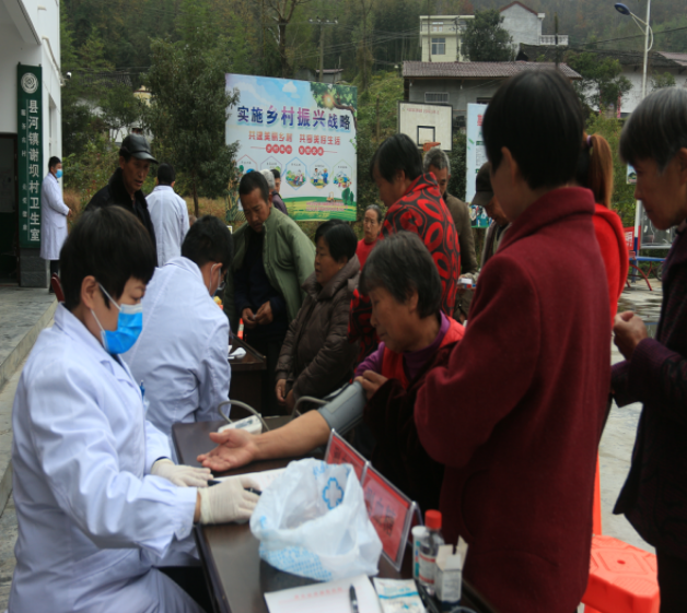 2021年11月18日,由运动健康科学学院党委书记刘勇带队,西安运动创伤医院内科、外科、骨伤科、五官科医生及护理等七名医务人员携带超声、心电图,血糖仪等仪器设备前往安康市县河镇谢坝村,为村民进行义诊活动。