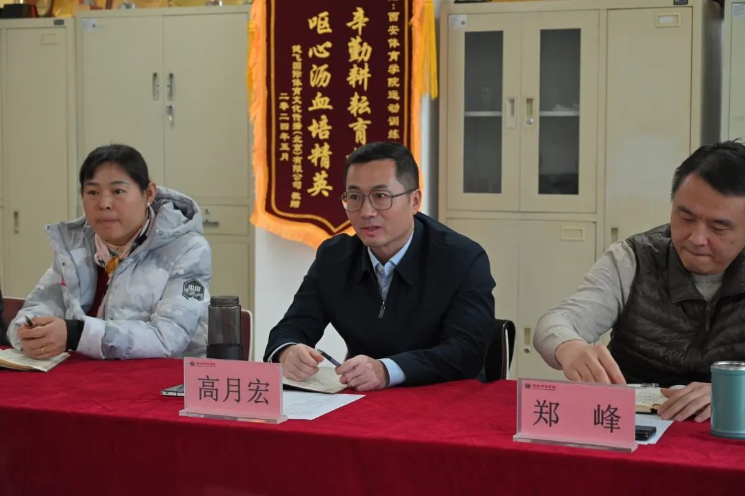 在座谈会上,运动训练学院副院长郑峰详细汇报了学院的基本情况、党建工作开展情况、人才培养、学风教风建设、科学研究以及竞赛训练等方面的工作。
