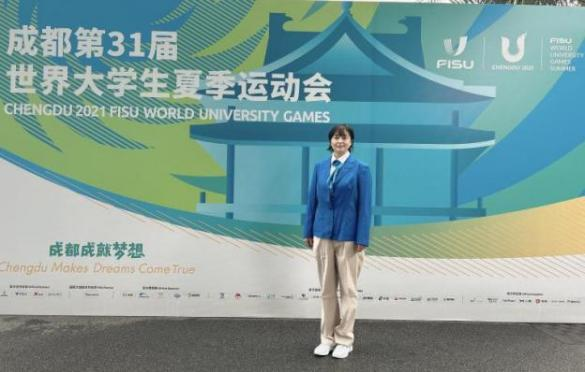 孙梅老师在2023年成都第31届世界大学生夏季运动会担任裁判员,在比赛中她始终遵守公正、专业、严谨、耐心、果断、公开、谦虚、诚信的八字原则。