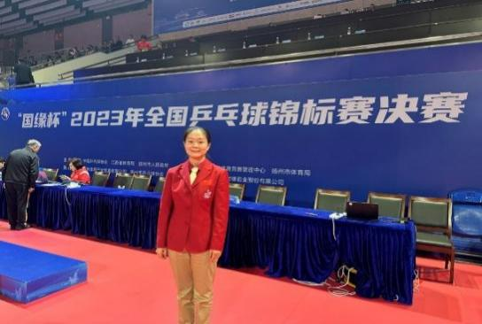 杜平老师在2023年全国乒乓球锦标赛决赛中担任裁判员。始终秉持公平、公正、公开的执裁要求,积极主动工作,坚持原则,秉公执裁。