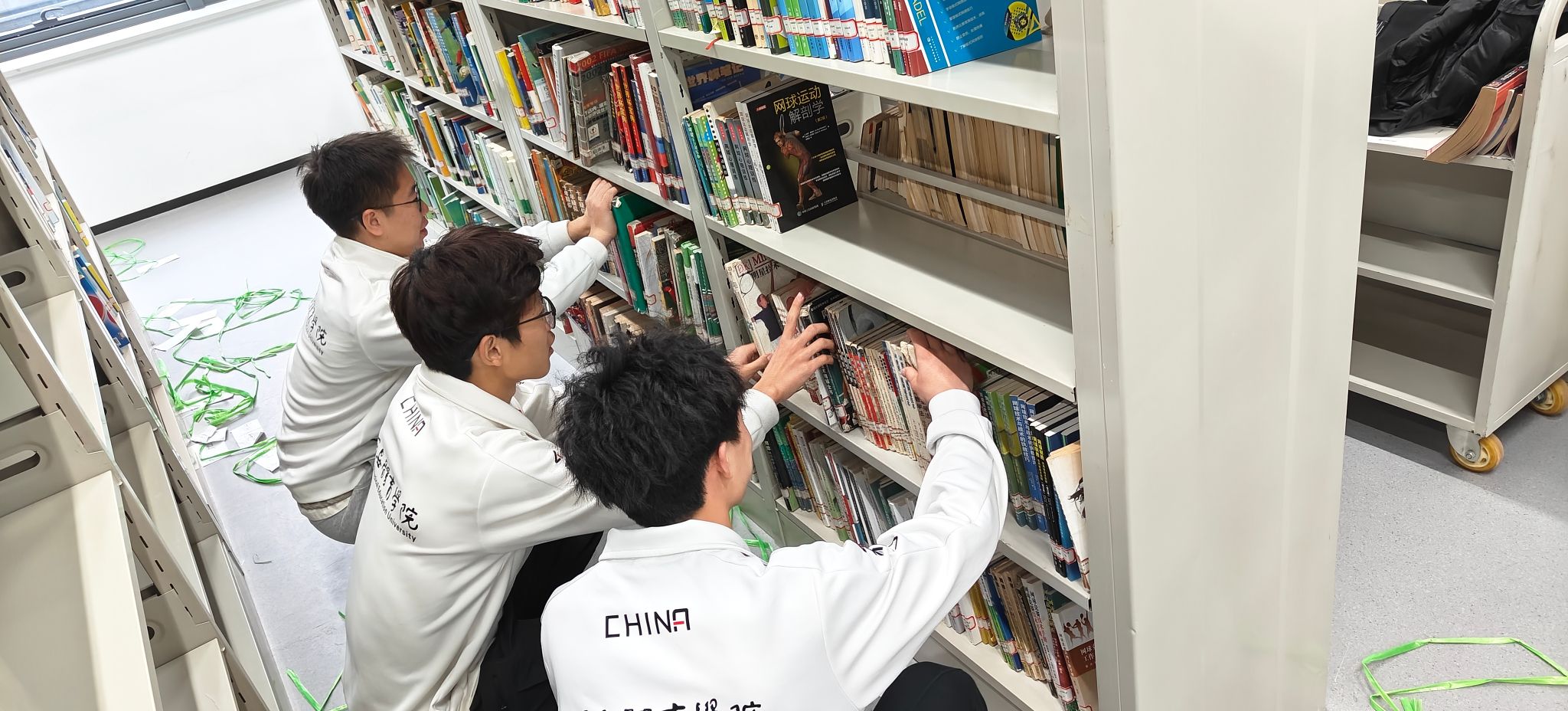 活动期间,24级体教志愿者们在工作人员的组织下迅速投入到紧张有序的工作中,有的志愿者负责书籍上架、有的志愿者负责整理书籍,但他们面对堆积如山的书堆和空荡荡的书架没有丝毫退缩。尽管摆放整理工作繁琐又辛苦,但志愿者们始终保持着高度的热情和耐心,现场洋溢着团结协作的良好氛围。