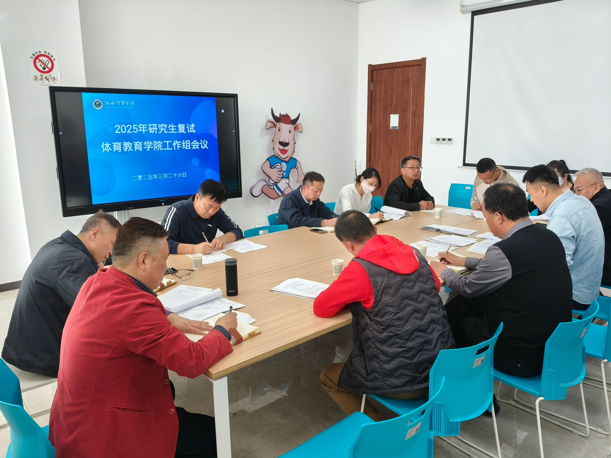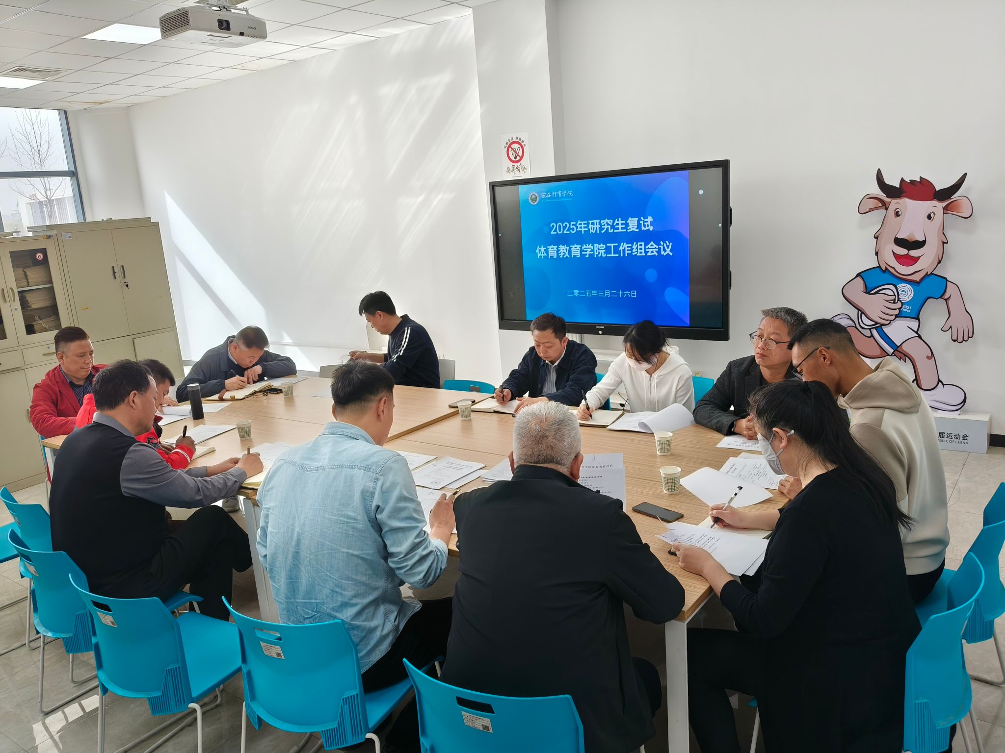 3月26日下午15:40,在橄榄球馆110会议室召开了体育教育学院2025年研究生复试工作组会议。体育教育学院领导班子成员、艺术学院领导班子部分成员,以及体育教育学院负责的学科和运动专项专家组组长、工作组成员参加了会议。