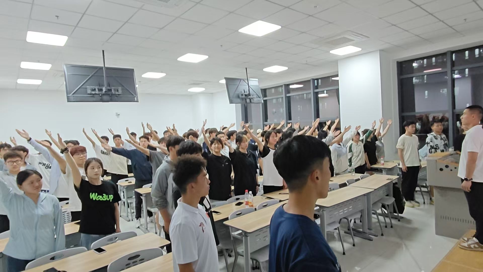 训练过程并非一帆风顺。同学们虽然有着饱满的热情,但在歌唱技巧和团队配合方面存在诸多不足。“很多同学一开始对音准把握不足,但大家用体育人的韧劲去攻克难关。”负责人刘奕鑫回忆道。为此,他们邀请了专业的音乐老师进行指导。从发声方法、节奏把握到情感表达,老师都进行了耐心细致的讲解和示范。同学们也毫不懈怠,利用课余时间刻苦练习。每天傍晚,校园的排练厅里都会传出他们激昂的歌声。