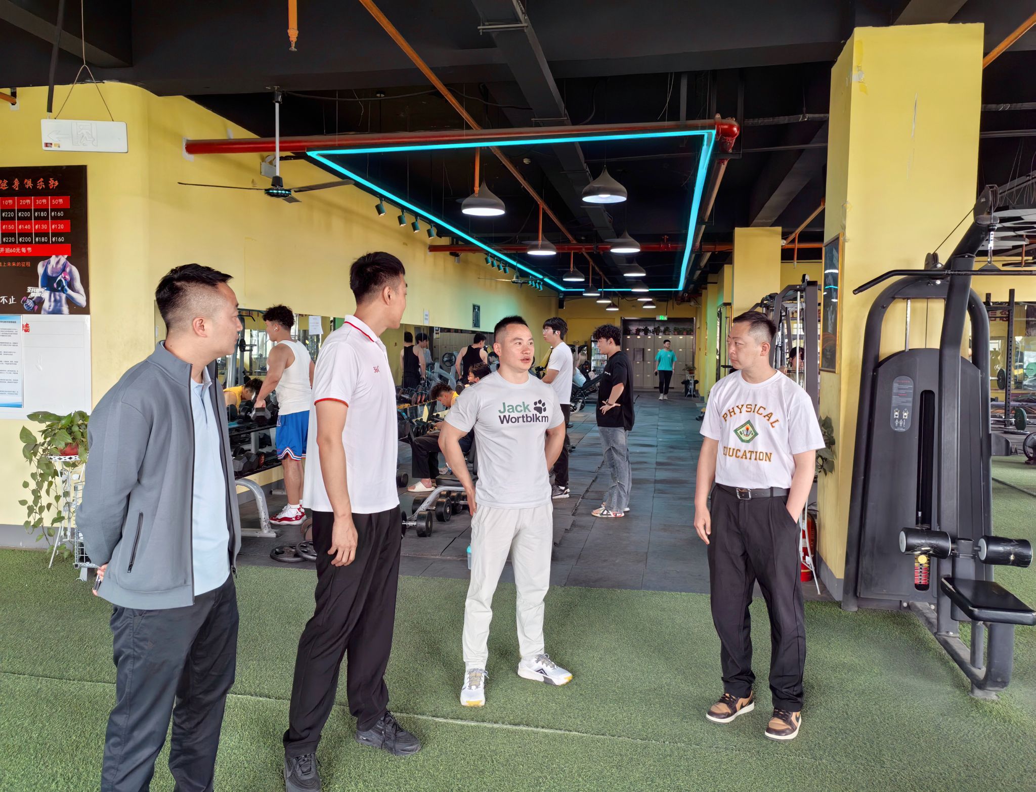 随后,校企双方进行了座谈,就人才需求、课程优化展开深入讨论。副院长宋耀伟介绍了体育教育专业的课程设置、学生技能优势;负责人周怀力提出,当前健身行业对具备运动康复知识、教学指导能力及职业资格认证的复合型人才需求旺盛,建议在课程中增加功能性训练、健身营销等内容。此外,周怀力表示可为学生提供实习岗位、职业资格培训等支持,助力毕业生快速适应行业需求。