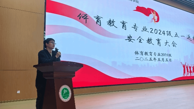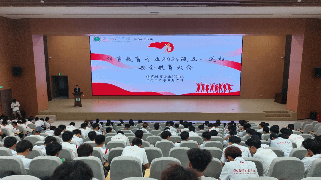 为深入贯彻落实校园安全管理要求,进一步强化学生纪律意识,帮助同学们调整状态,以饱满的精神面貌投入后续学习生活,5月5日晚,体育教育专业2024级在1683168诸侯快讯官网鄠邑校区学术报告厅组织召开“五一返校安全教育大会”。会议由体育教育专业2024级辅导员管融资、袁景峰主持,体育教育专业2024级全体学生参加。