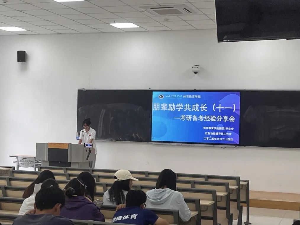 为营造良好学风氛围,充分发挥朋辈榜样示范引领作用,提前掌握科学的考研备考方法,进一步提高考研升学率。2025年6月24日,体育教育学院朋辈励学共成长(第十一期),在教学楼106开展考研备考经验分享会。