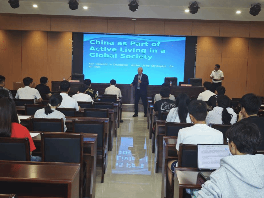 伯根教授首先和学生们进行了亲切互动,探讨了现代社会积极生活方式的重要性,就什么是积极生活方式,为什么要开展积极生活方式做了详细介绍。其次,作为全球社会积极生活的重要组成部分,针对中国各年龄段的不同情况,伯根教授给出了制定积极生活方式的关键要素。随后,伯根教授详细阐释了社会变迁对积极生活方式的结构性挑战。他指出,在全球化与现代化进程中,日常生活的变化催生了参与体育运动的新方式、新型社区出现、商业化趋势日益显著,以及国家福利制度变革的适应性调整,这些因素都影响这积极生活方式的发展。