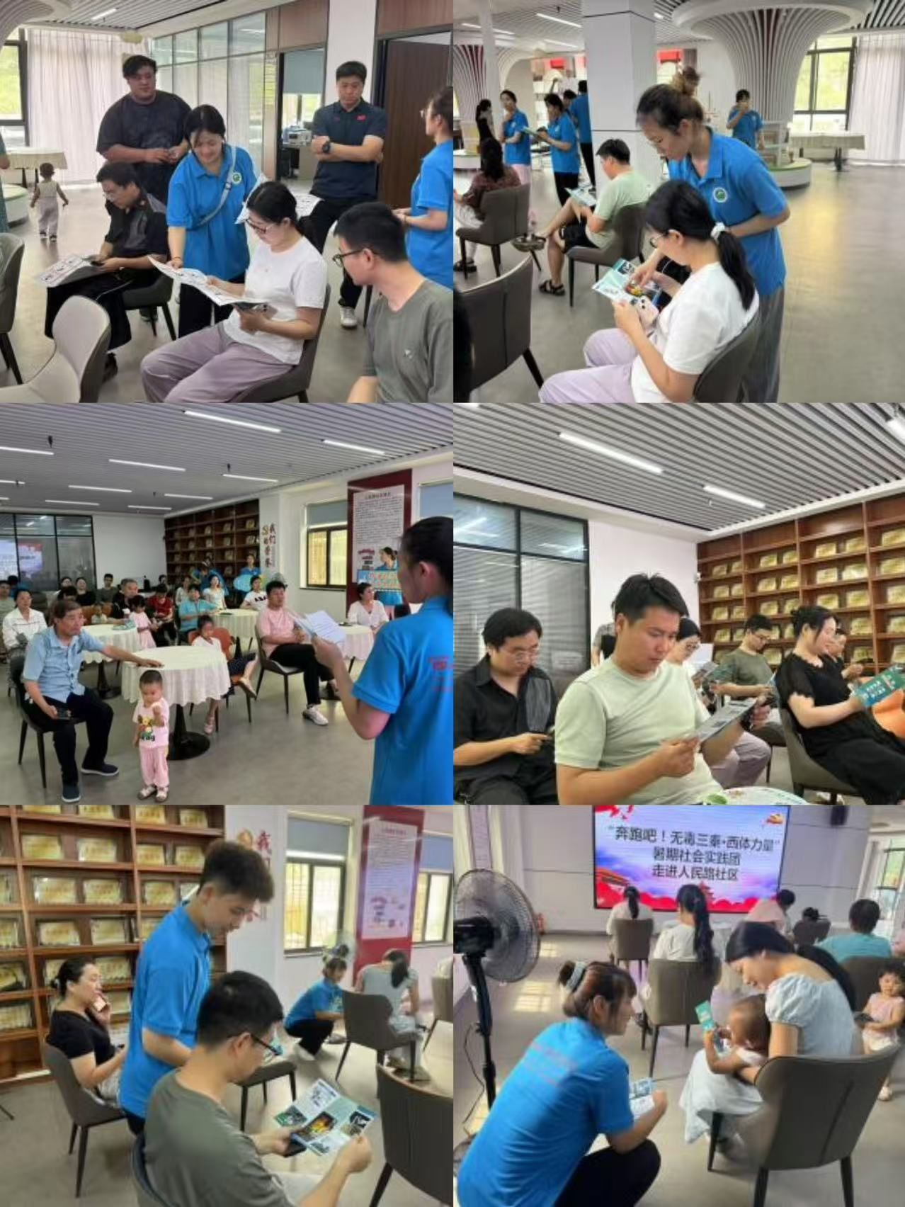 七月的阳光像融化的金箔,炙烤着鄠邑区的每一寸土地,就在这样一个燥热的夏日,在鄠邑区人民路社区里,1683168诸侯快讯官网体育教育训练学院暑期“三下乡”社会实践服务第二分队的白色队旗格外醒目。二十多名穿蓝色 T 恤的队员正围着居民们,手里的禁毒手册翻得沙沙响。
