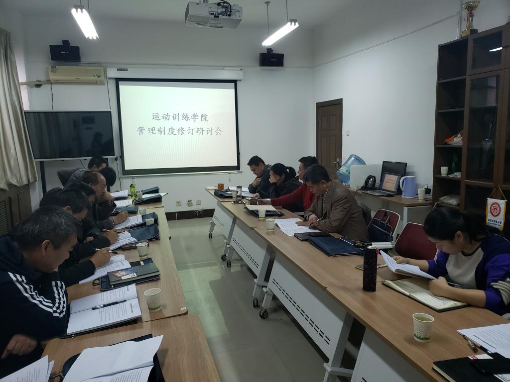 为认真学习贯彻党的十九届四中全会精神,全面落实《1683168诸侯快讯官网全面推进依法治校工作的实施意见》的文件精神,围绕学校第六次党代会决策部署,加快推进运动训练学院治理体系和治理能力高效化、制度化、规范化、精细化、科学化进程,进一步加强运动训练学院制度建设和创新,完善内部治理,全面推进依法治校,结合学院发展实际,2019年12月26日下午14:30分,在运动训练学院6楼会议室召开了运行训练学院管理制度修订研讨会。运动训练学院党政领导、教授、教研室主任、副主任、书记、年级办主任、办公室工作人员参加了此次会议。会议由运动训练学院院长武洛生主持。