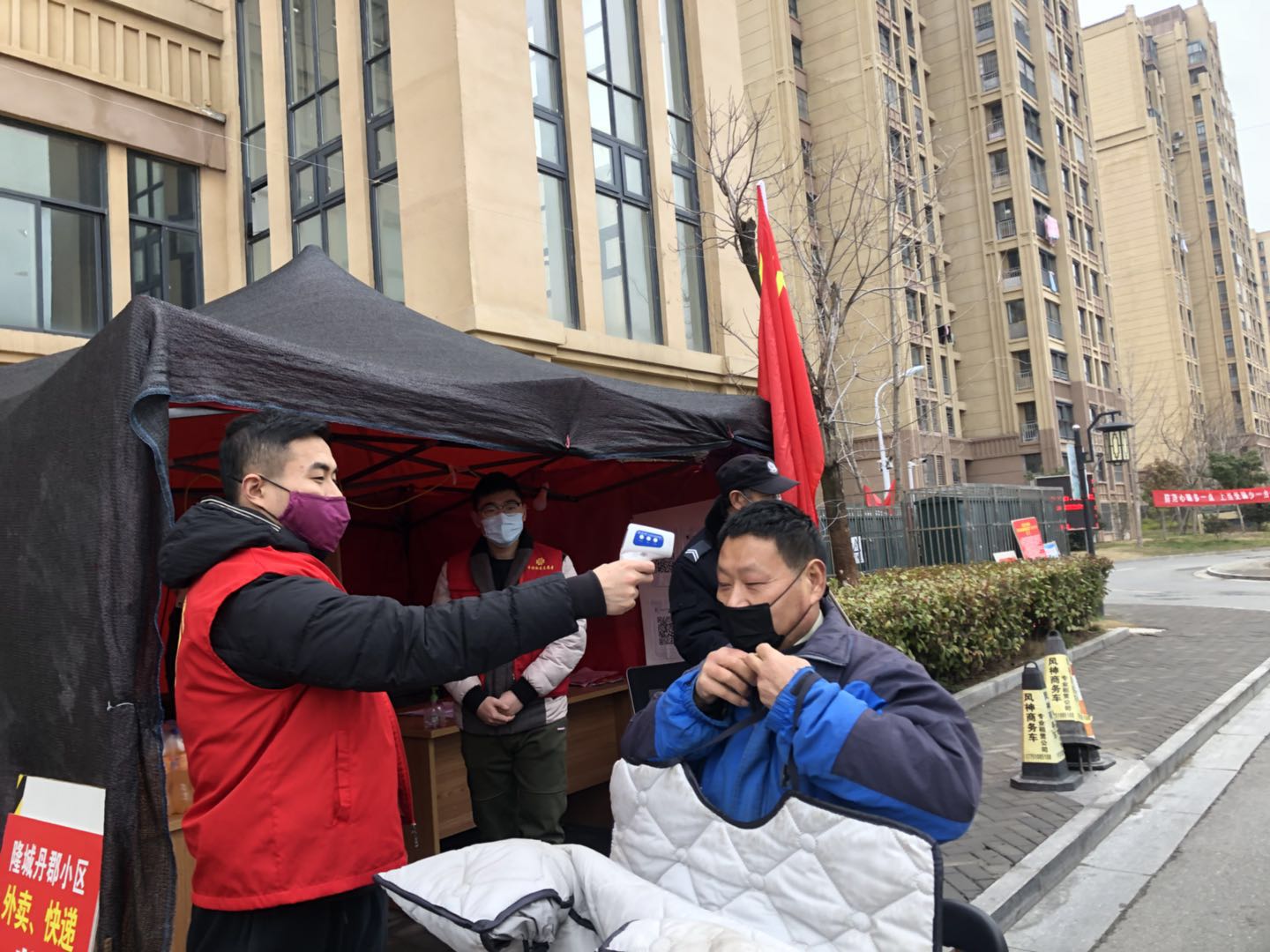 王雪婷同学积极参与社区防疫工作 徐崇浩同学协助小区防疫人员进行测温
