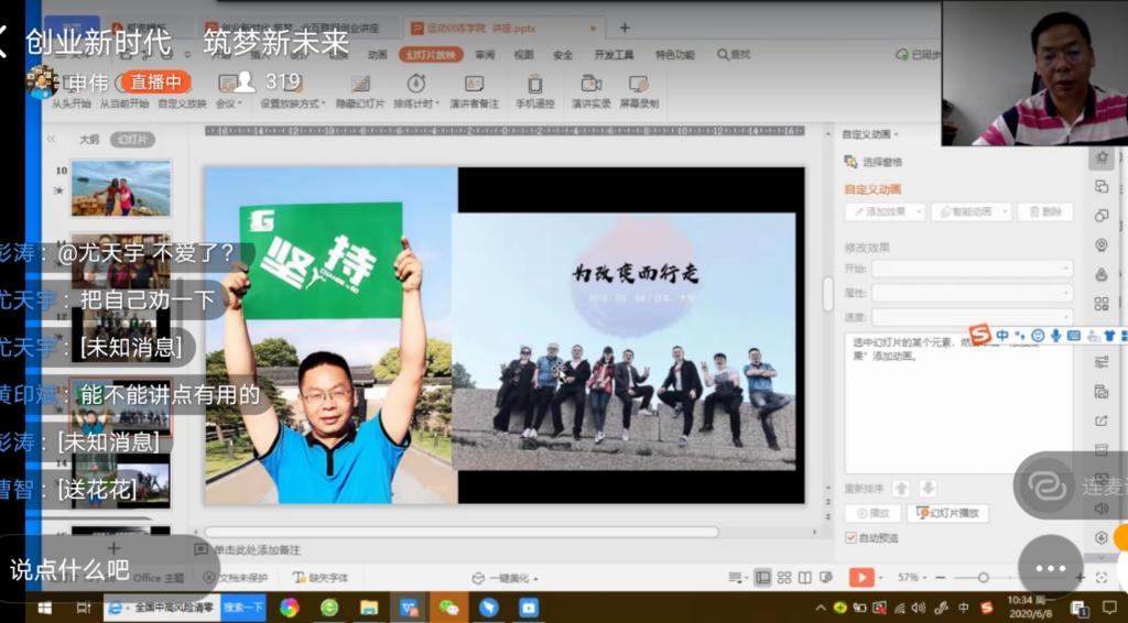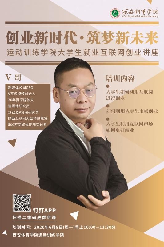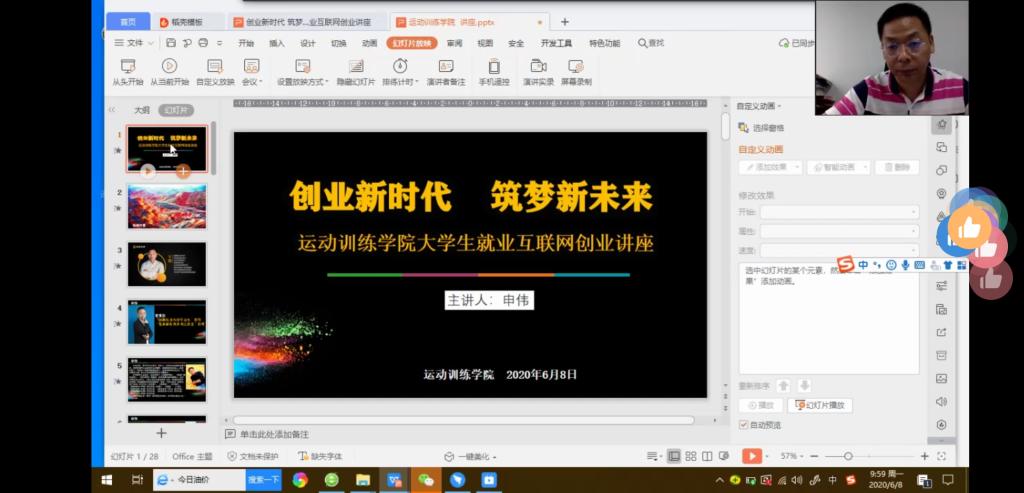6月8日上午,运动训练学院通过云课堂邀请新媒体公司CEO、20年资深媒体人、陕西省互联网大会特邀嘉宾申伟做了一场以“创业新时代 筑梦新未来”为主题的运动训练学院大学生就业互联网创业讲座。我院党政负责人、全体辅导员、2016级全体学生及2017级学生代表全程参与课堂。
