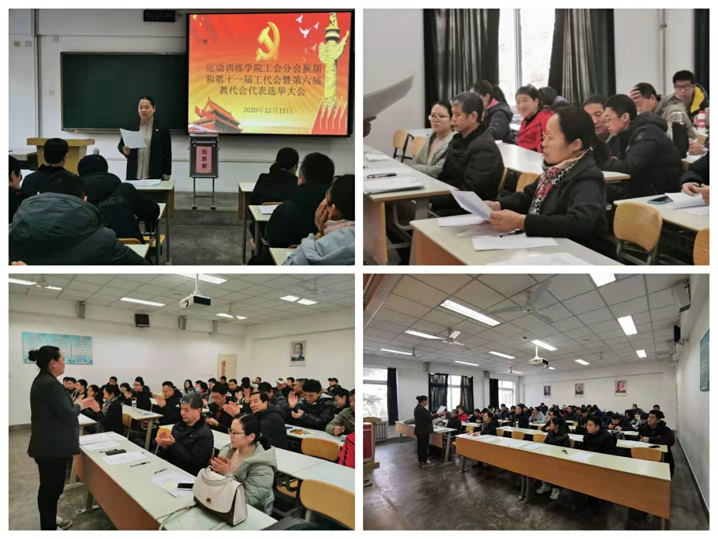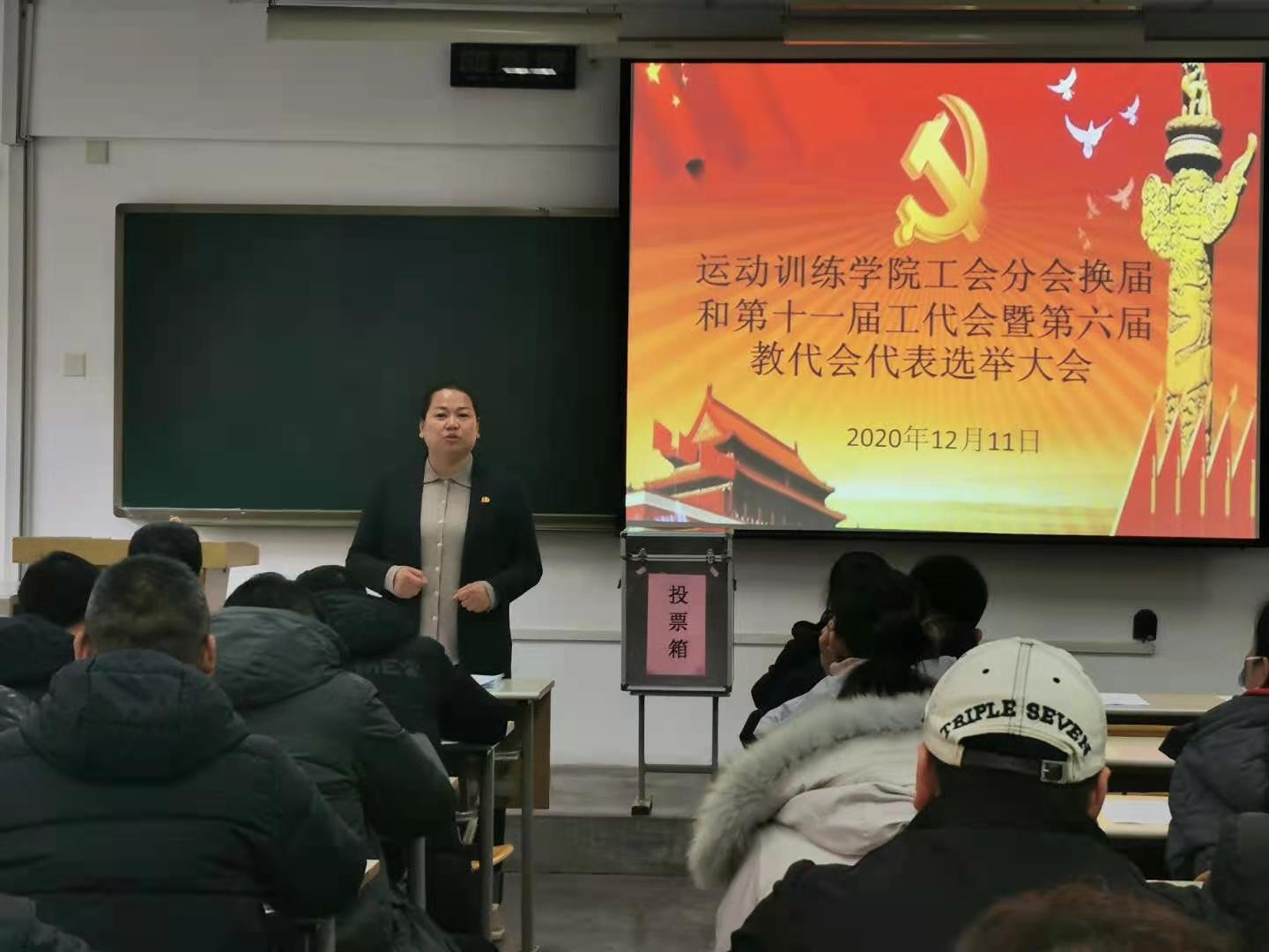 为完善基层分会民主选举制度,加强基层分会组织建设,推进依法治校,维护教职工的权利,促进学校各项工作的顺利开展。2020年12月11日,运动训练学院召开全院教职工大会进行了学院分工会、教代会的换届选举,会议由党委书记王鑫主持。