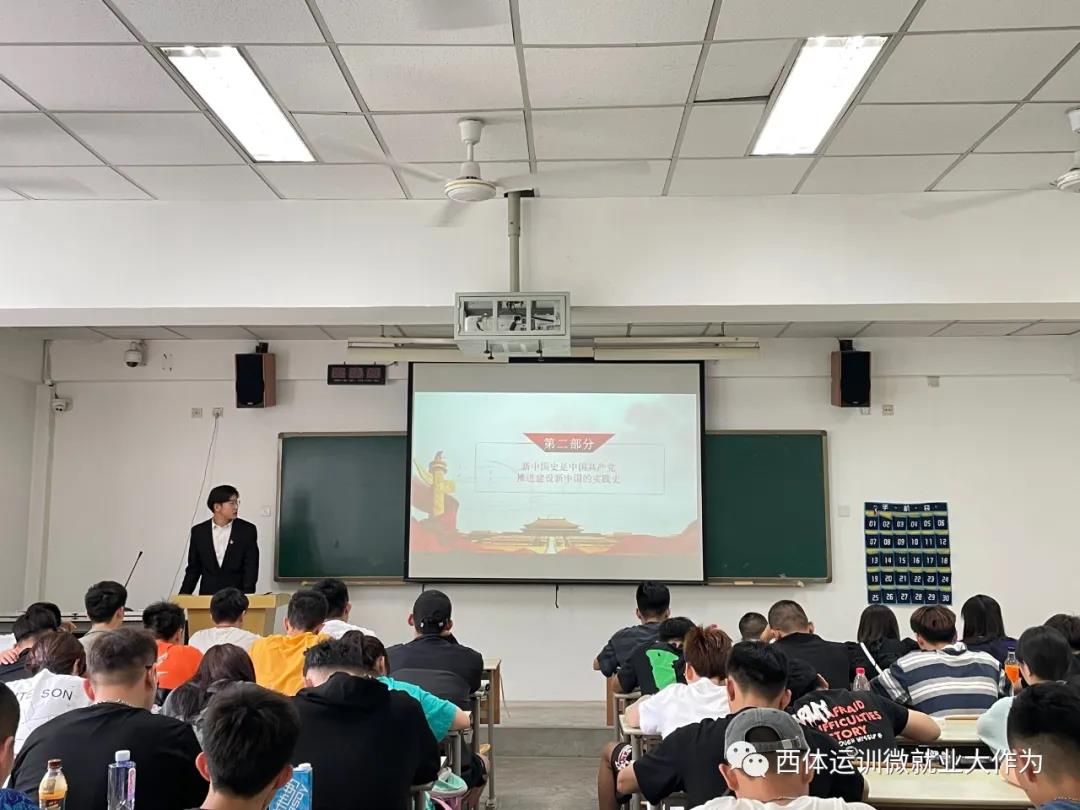 侯广顺同学向19级同学介绍了“四史”的内容,包括党史、新中国史、改革开放史、社会主义发展史。希望同学们要全面学习“四史”,通过党史学习,要学出历史思维,学出忠诚担当,学出人民立场,增强爱党意识,自觉提升党性修养和政治觉悟,真正做到信仰如山、信念如铁、信心如磐,以实际行动不忘初心,牢记使命,让初心薪火相传,希望我们运训青年通过学习知党史、强信念、报党恩,更加努力学习刻苦训练早日成为体育强国建设者的合格接班人。