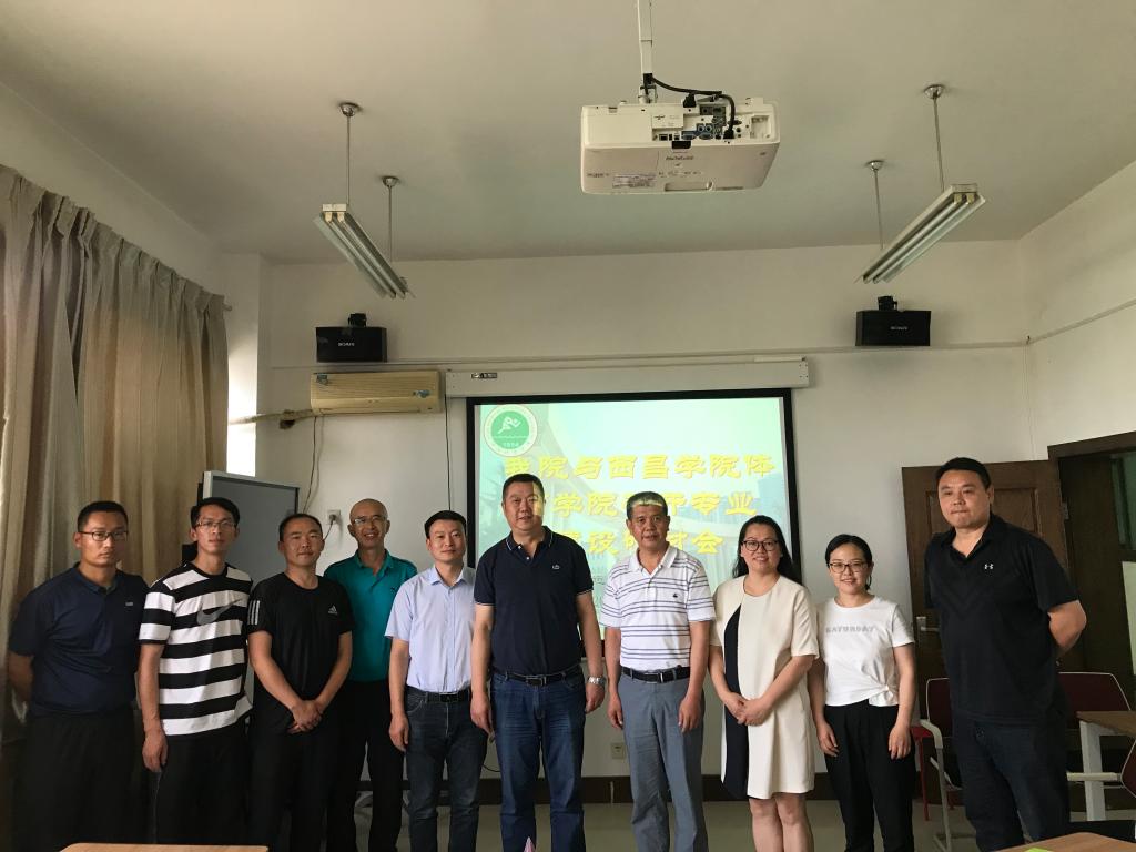 6月1日下午2: 30在综合训练馆六楼会议室,运动训练学院与西昌学院体育学院召开专业建设交流会。主要参会人员有西昌学院体育学院院长刘志刚、副院长郎朝春、体育教育教研室主任刘吉峰、科研秘书王强、教师谢志民、教师王泽刚;运动训练学院党政领导班子成员、办公室成员、各教研室主任和书记。本次会议由副院长郑峰主持。