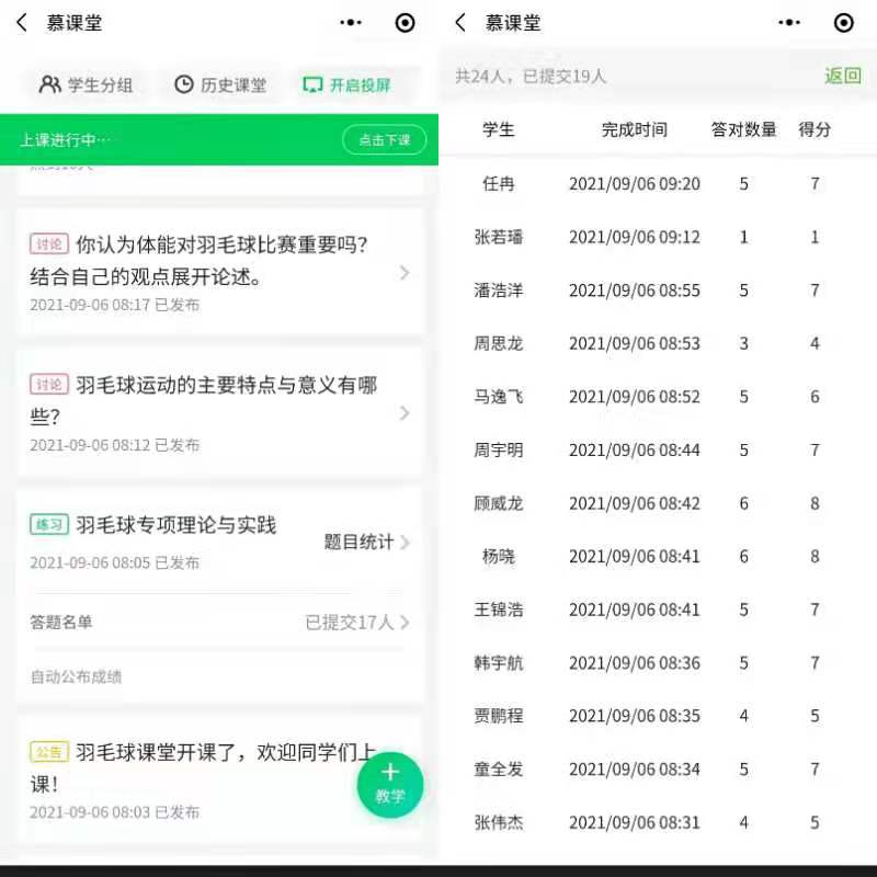 经汇总整理,篮球教研室选用腾讯课堂和腾讯会议平台对学生进行线上授课;排球教研室选用学习通和腾讯课堂平台对学生进行授课;乒羽教研室选用学习通、慕课堂+腾讯会议和腾讯会议+QQ(微信)等平台对学生进行授课;运动训练学教研室选用学习通+讨论作业平台对学生进行授课;重竞技教研室选用学习通+PPT+讲解、腾讯会议、慕课堂、微信等平台对学生进行授课。