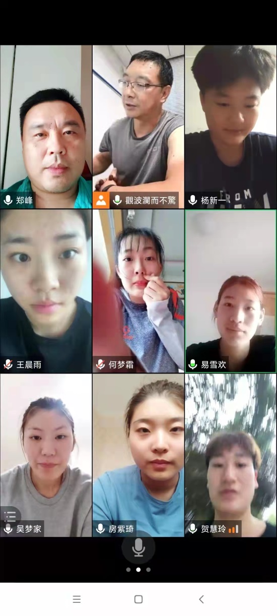 开课第一天,运动训练学院辅导员全部跟班进群,各班班长开课前20分钟发信息督促同学做好上课准备。同学们能积极提前预习上课内容,在线上课程中表现的都很活跃,积极与老师互动配合,不管是在上课前的签到还是老师课上布置练习题,同学们都是积极主动的配合,在老师的讲解过程中,同学们也能主动的提出问题;当老师说到精彩部分的时候,同学们也是毫不吝啬的送上花花给予支持!