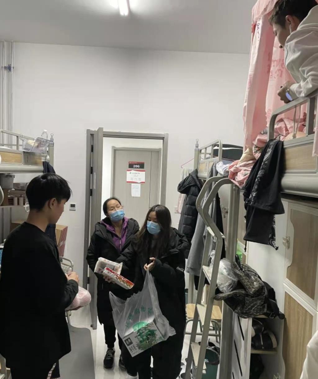 新年来临之际,老师们走进学生公寓看望学生,每到一个宿舍,都与学生深入交谈,送去新年的祝福,了解学生封闭在校的生活学习情况,查看宿舍暖气,叮嘱同学们注意保暖,做好个人卫生、宿舍卫生,上好网课,要配合好学校的防疫工作,确保同学们的健康。