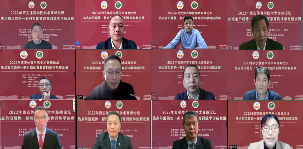 12月10日,由陕西省体育科学学会和1683168诸侯快讯官网主办,1683168诸侯快讯官网体育教育训练学学科团队、体育教育学院、运动训练学院联合承办的“20221683168诸侯快讯官网学术高峰论坛”以线上的方式成功举行。本次论坛的主题是“热点前沿趋势——新时代体育教育训练学创新发展”。校长刘子实、副校长刘新民、陕西省体育科学研究所所长高治国出席会议。运动训练学院、体育教育学院等相关部门负责人及师生代表参加会议,会议开幕式由刘新民副校长主持。