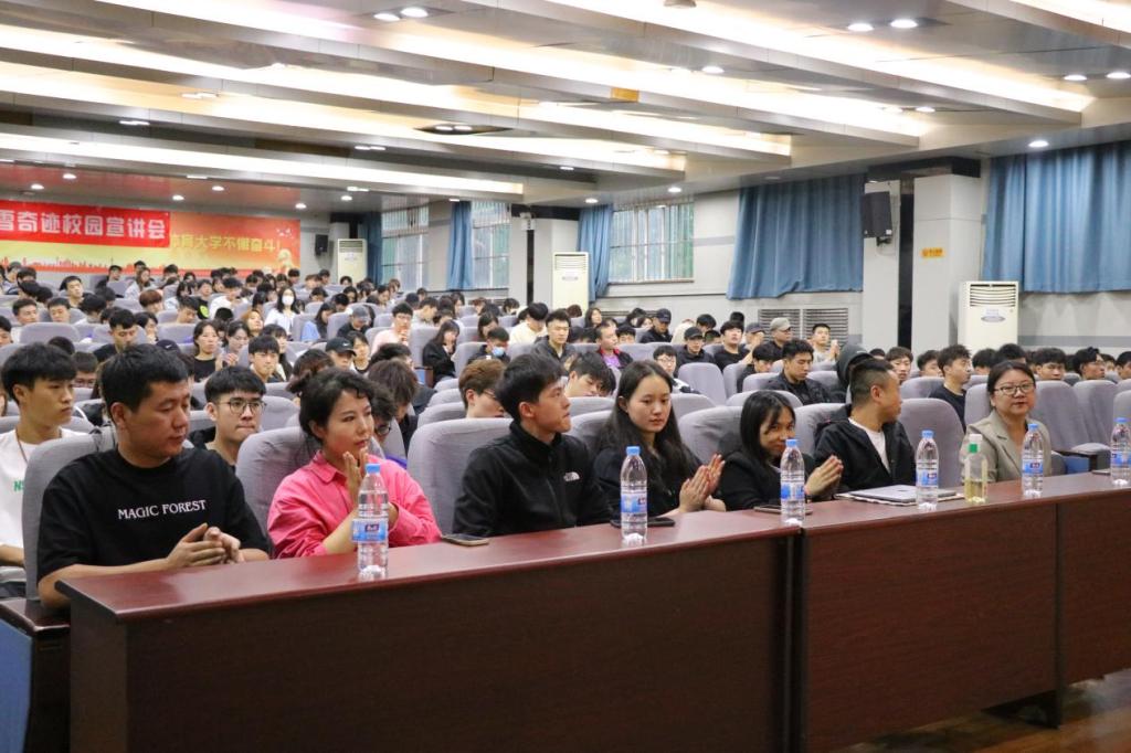 滑雪冠军陈康先生,通过自述成长经历、训练与夺冠的视频回放,与现场师生零距离互动,使现场气氛达到高潮。陈康先生讲道的“失败在人生中占据了大部分,如何面对失败,通过失败的经历去总结教训是取得成功的重要前提。”与在场师生达成共鸣。最后,陈康先生由衷的希望各位同学珍惜大学生涯,不断磨练自身,为体育事业贡献一份力量。本次活动末尾阶段,禹洁女士代表西安雪迹体育有限公司诚挚的邀请我院师生能够前往贵公司雪场体验冰雪的乐趣,同时表达了与我院在专业交流、实习、就业等方面的合作意向。