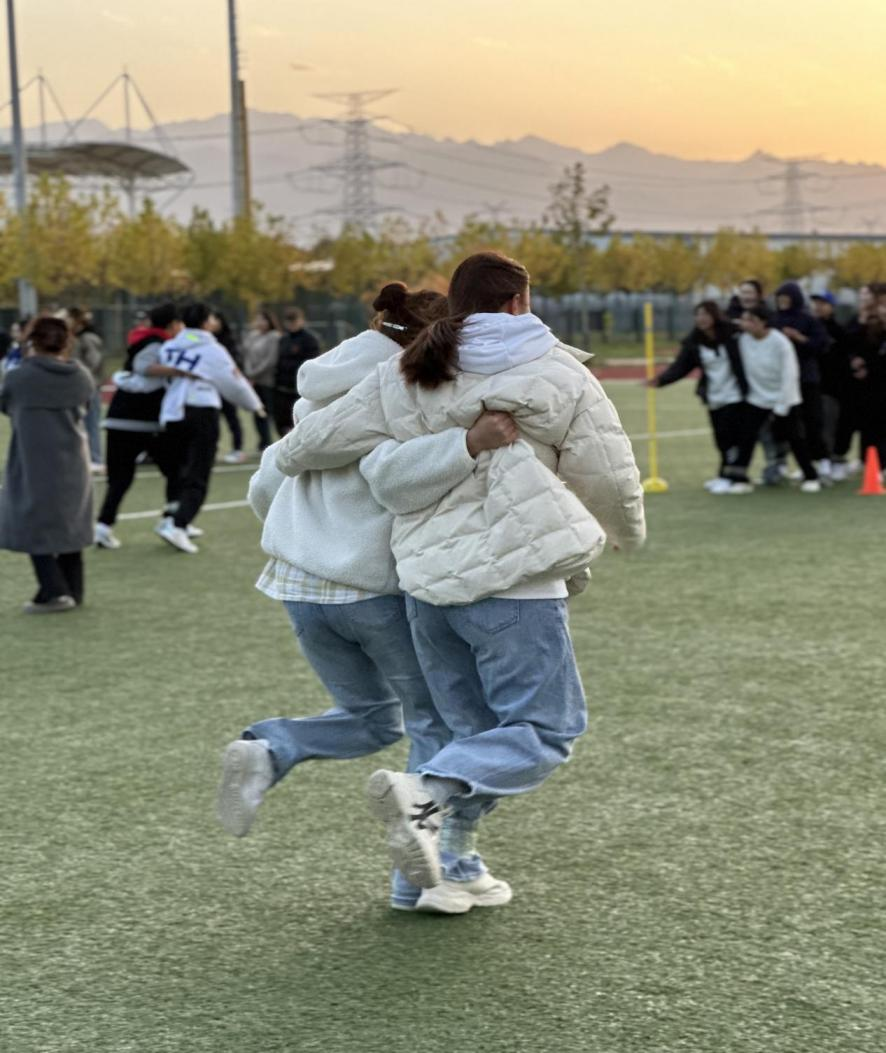 最后进行的项目是两人三足,比赛过程中,现场充满了欢声笑语。同学们在奔跑中互相激励,彼此加油助威,一边观看的同学们也不时发出阵阵欢呼声,为参赛队伍加油打气。在场师生的热情如同一簇绚烂的焰火在比赛场中绽放,通过欢笑将团结协作的精神传递给在场的每一个人。