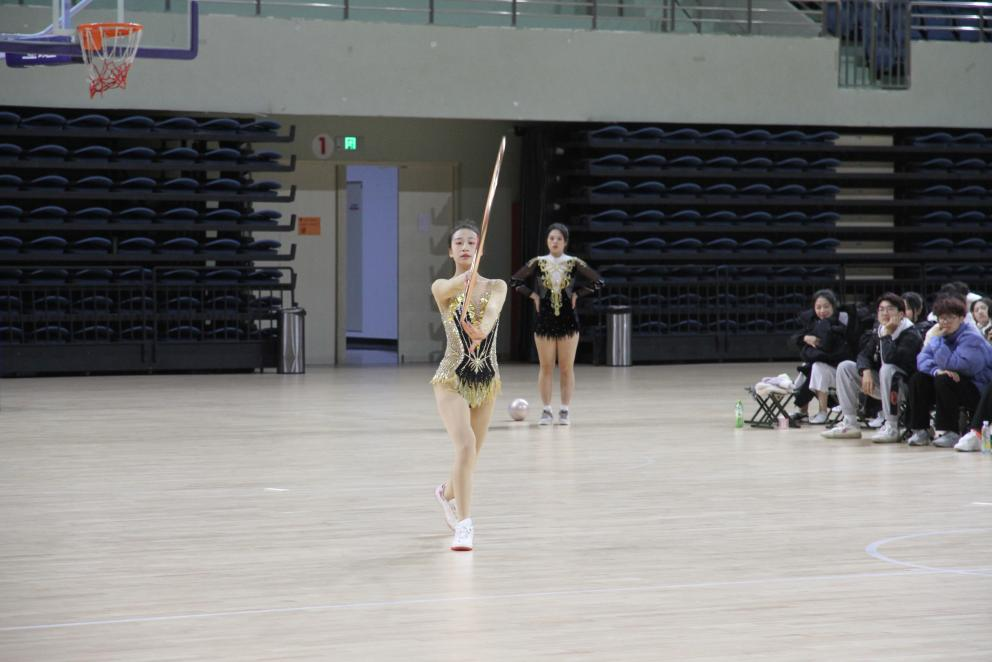 接下来由杜玉洁、武佳莉带来的艺术体操表演《舞动青春》。