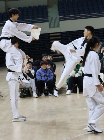 接下来是2023级跆拳道专项同学带来的跆拳道表演“旋风少年”,