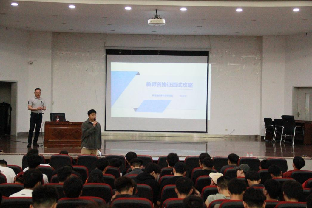 为进一步提高运训学子教师资格证面试能力,4月22日晚,运动训练学院在含光校区教学楼五楼报告厅举办教师资格证面试指导培训会。本次讲座特邀陕西省教育科学研究院专家屈彦雄老师进行专业指导。运动训练学院党委副书记王青、2021级年级负责人王涛、兼职辅导员夏玉君及2021级全体学生参加了本次培训会。