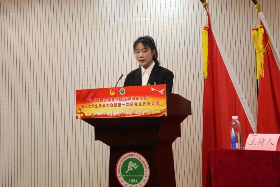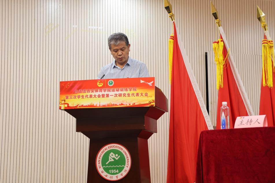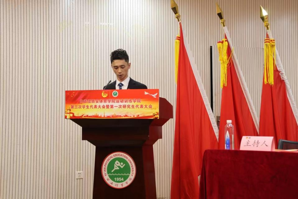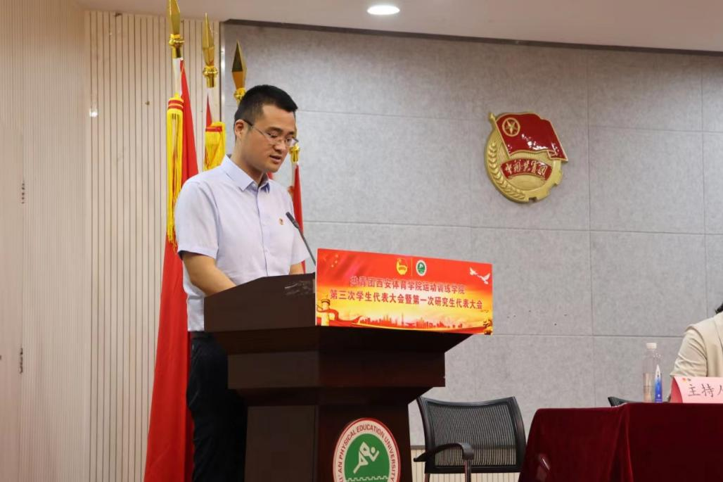 青春正当时,奋进当有为。踏上新征程,开启新篇章。为高举习近平新时代中国特色社会主义思想伟大旗帜, 全面贯彻落实党的二十大精神,加强和改进新时代我院学生会、研究生会工作,引领广大同学努力成为堪当民族复兴重任的新时代青年,6月19日下午,运动训练学院第三次学生代表大会暨第一次研究生代表大会在含光校区教学楼一楼报告厅顺利召开。