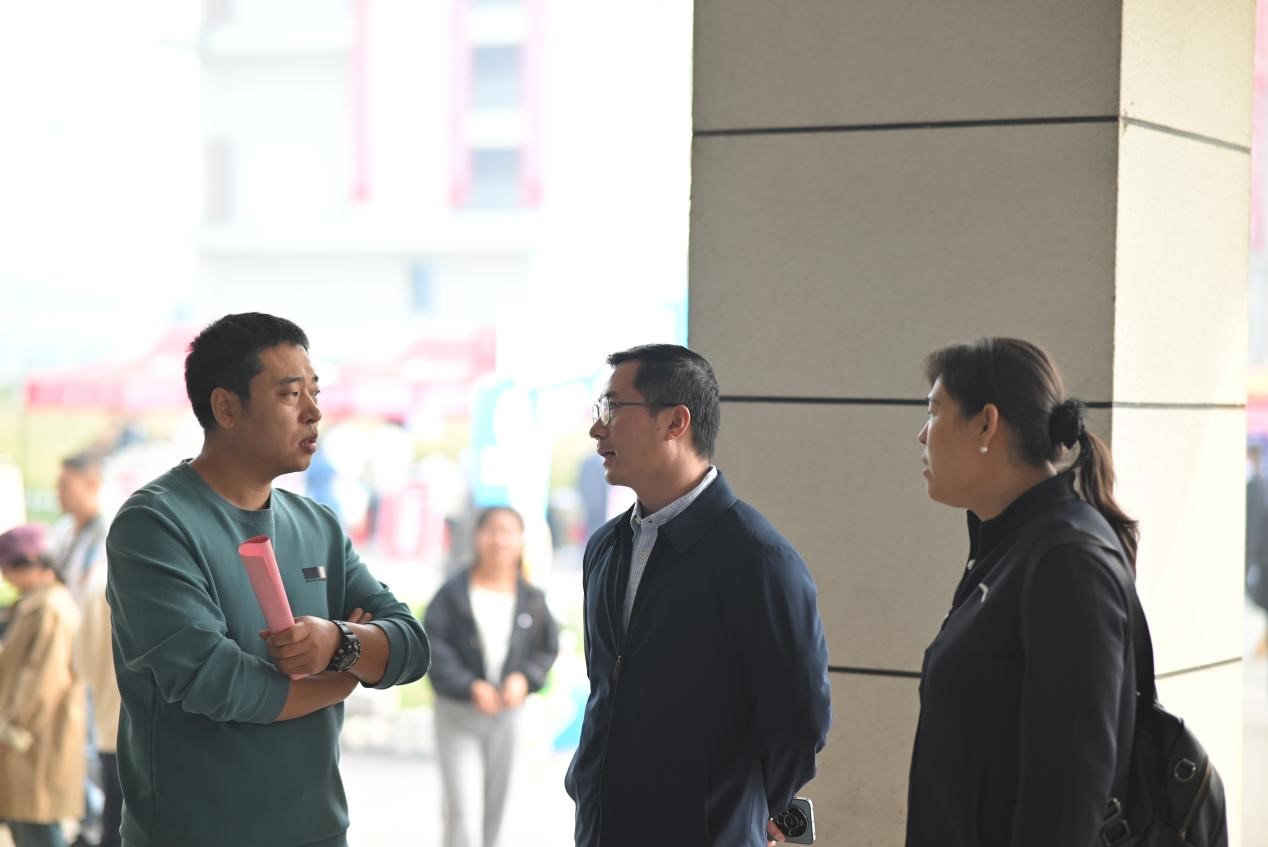 院长武洛生、党委书记高月宏、党委副书记王青、党政办主任刘志云等一行来到报到现场,查看迎新工作开展情况,并与新生和家长亲切交谈,传递关怀与温暖。