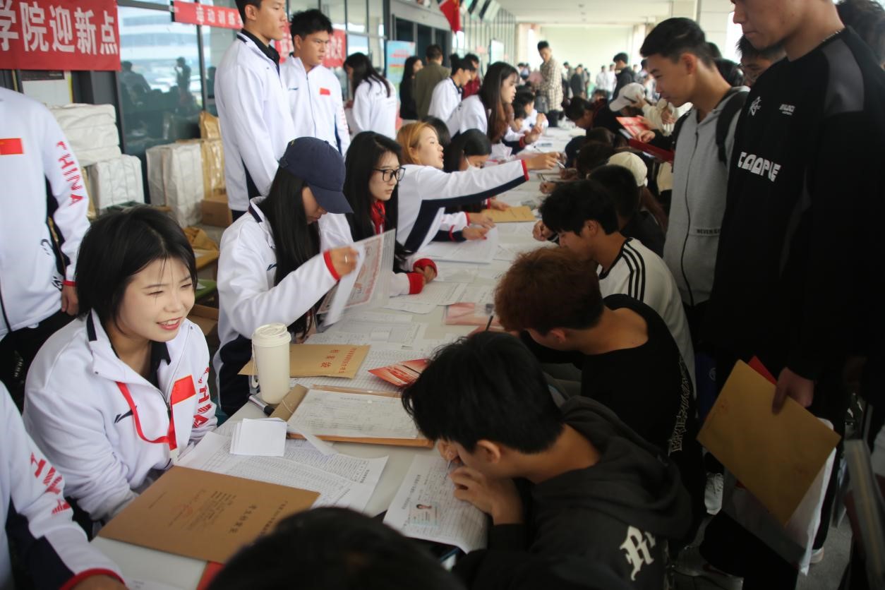 志愿者们积极投入到迎新工作中,指引新生进行资格审查、报到核验、档案收集等等,整个过程井然有序,展现了运动训练学院师生的良好风貌。