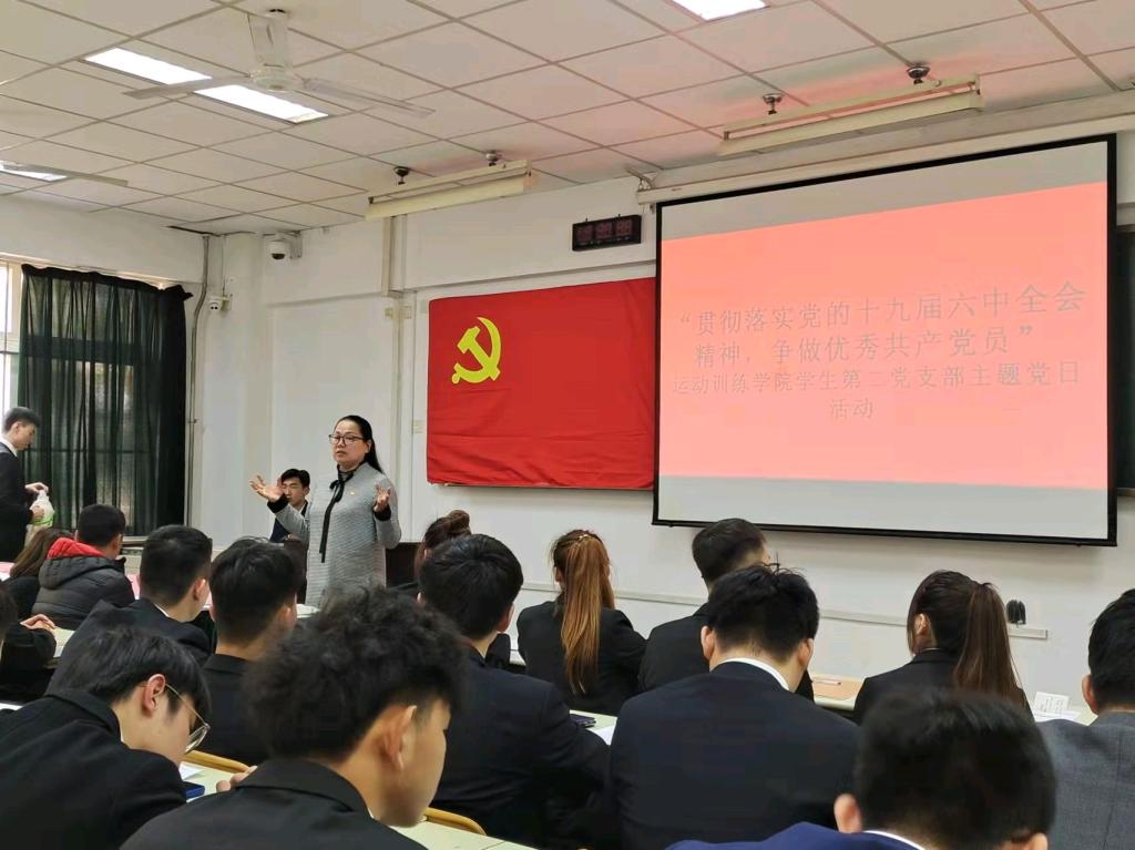 此次活动由运动训练学院学生第二党支部书记张即帅主持,院党委书记王鑫、院党委副书记张佩莉、院党政办主任刘志云、学生第二党支部委员罗玄,以及学生第二党支部的党员、预备党员以及入党积极分子参加了此次活动。