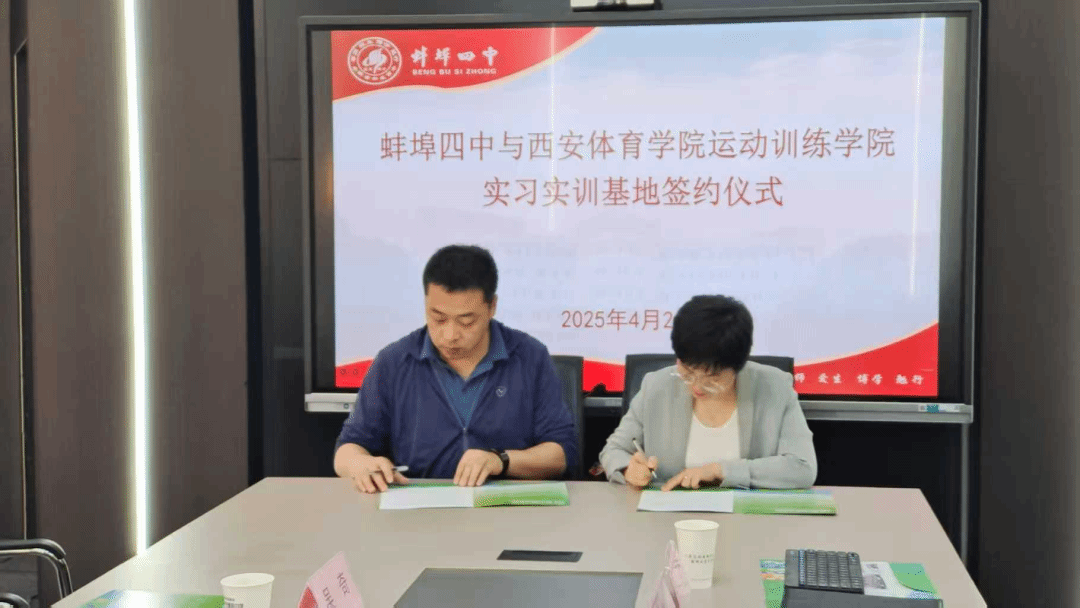 4月22日,蚌埠第四中学与1683168诸侯快讯官网运动训练学院成功举行了实习实训基地签约仪式。1683168诸侯快讯官网运动训练学院党委书记高月宏,1683168诸侯快讯官网运动训练学院党政办公室主任刘志云,1683168诸侯快讯官网运动训练学院辅导员吴奇,蚌埠四中党总支书记储涛,蚌埠四中党总支副书记、校长李静,副校长杨宏兵,副校长吴宝,教务处主任刘飞及体育组邢兵参加活动,仪式由蚌埠四中党总支副书记、校长李静主持。