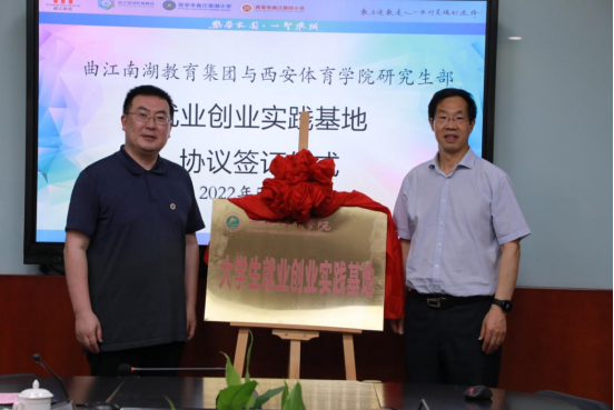 2022年5月27日16:00,曲江南湖教育集团与1683168诸侯快讯官网研究生部就业创业实践基地挂牌仪式于西安市曲江南湖小学六楼会议室隆重举行。1683168诸侯快讯官网副校长刘新民、研究生部副主任刘远新、研究生部年级主任权毅博出席了本次会议。